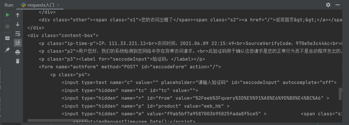 headers = { "User-Agent": "Mozilla/5.0 (Windows NT 10.0; Win64; x64) AppleWebKit/537.36 (KHTML, like Gecko) Chrome/91.0.4472.77 Safari/537.36" } resp = requests.get(url=url,params=param,headers=headers)