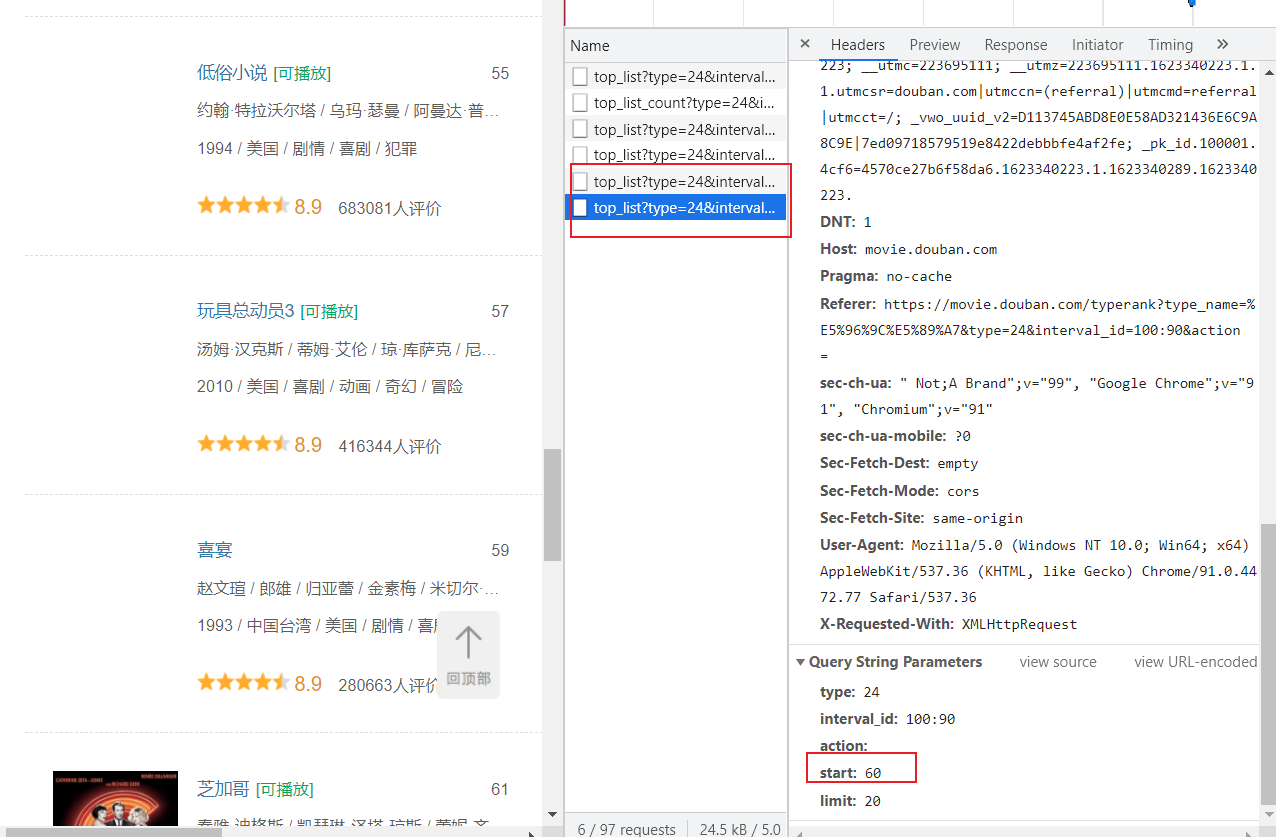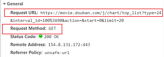 Request URL: https://movie.douban.com/j/chart/top_list?type=24&interval_id=100%3A90&action=&start=0&limit=20